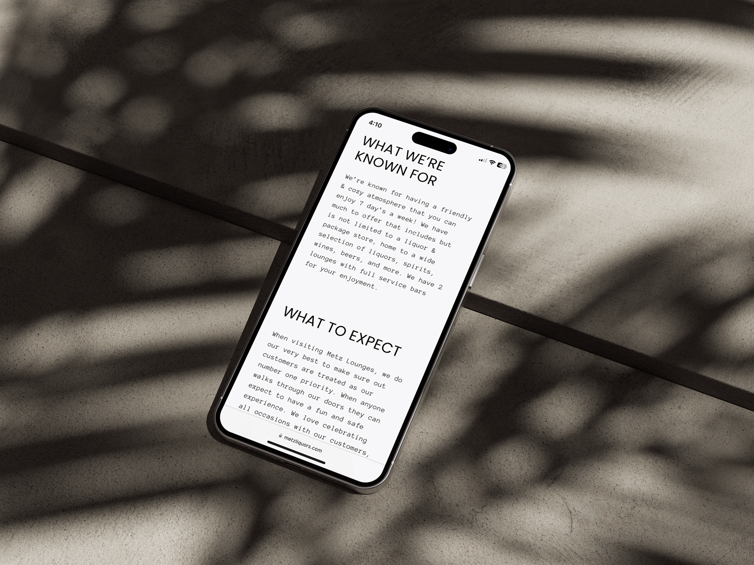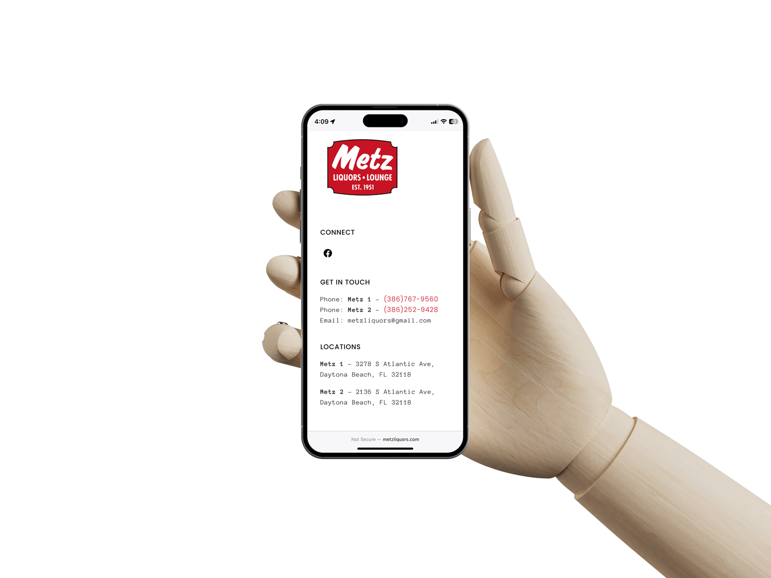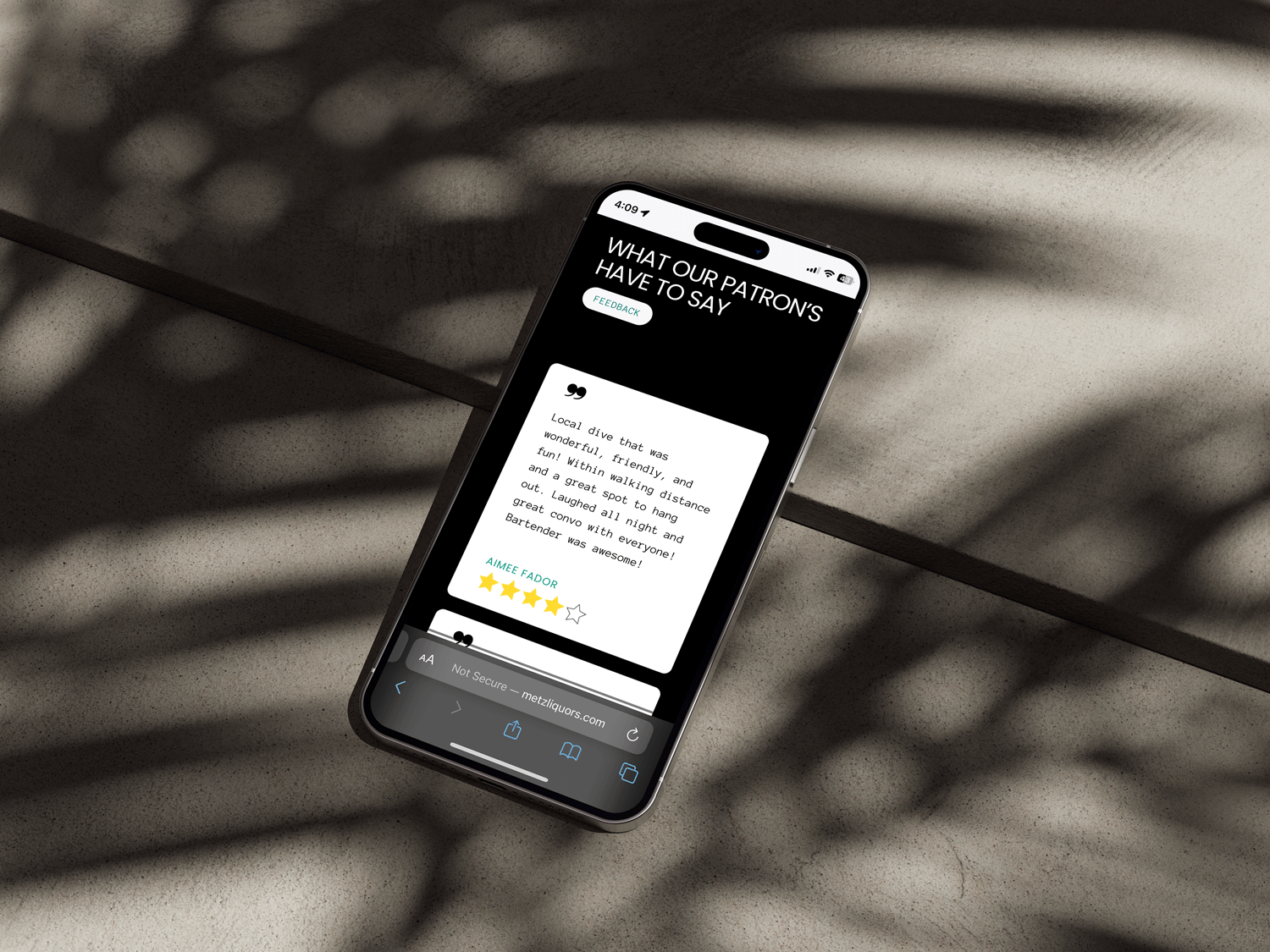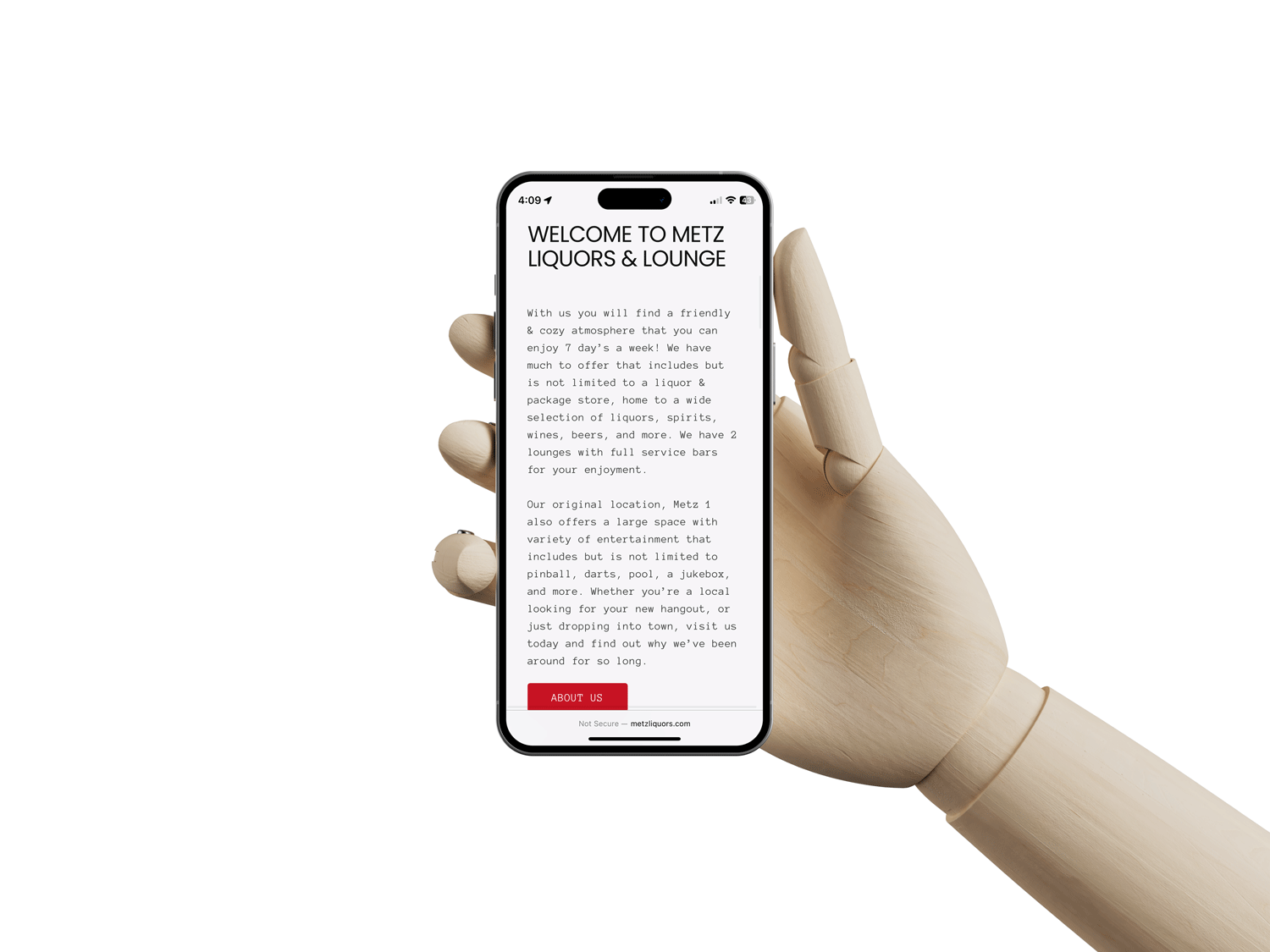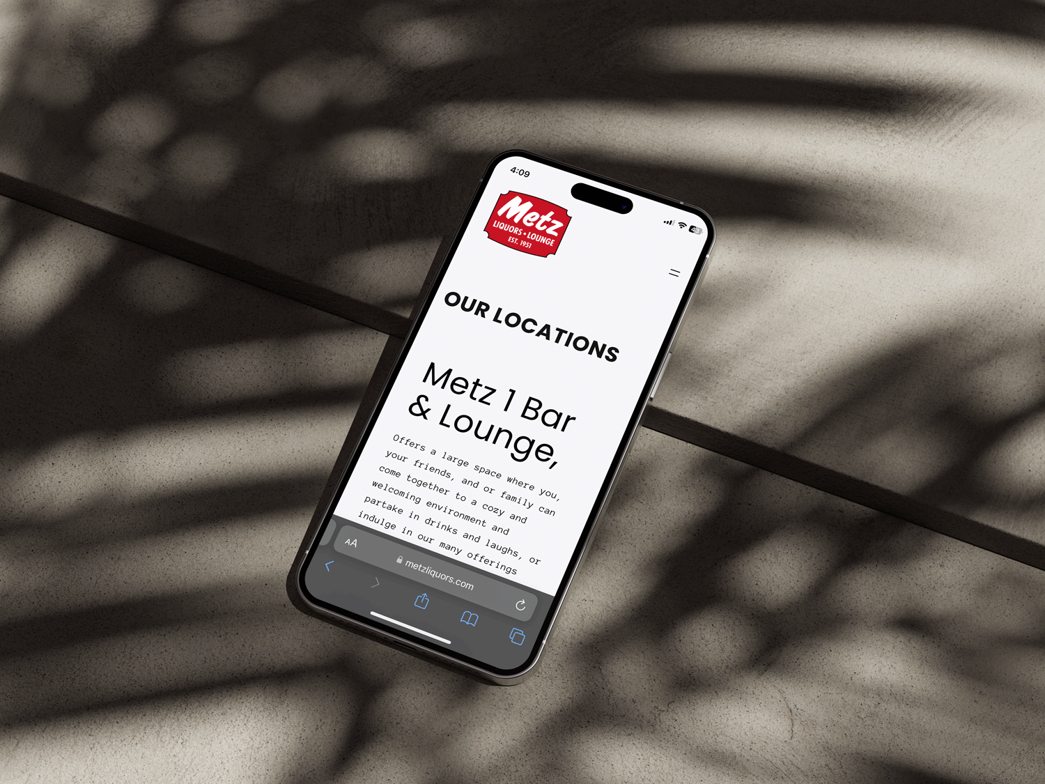 To translate their physical legacy into a digital footprint, Metz Liquors partnered on a debut web presence, including a custom website build and on-location photography. The goal was to establish a discoverable, welcoming, and consistent identity that honored their roots while modernizing their reach for a new generation.
