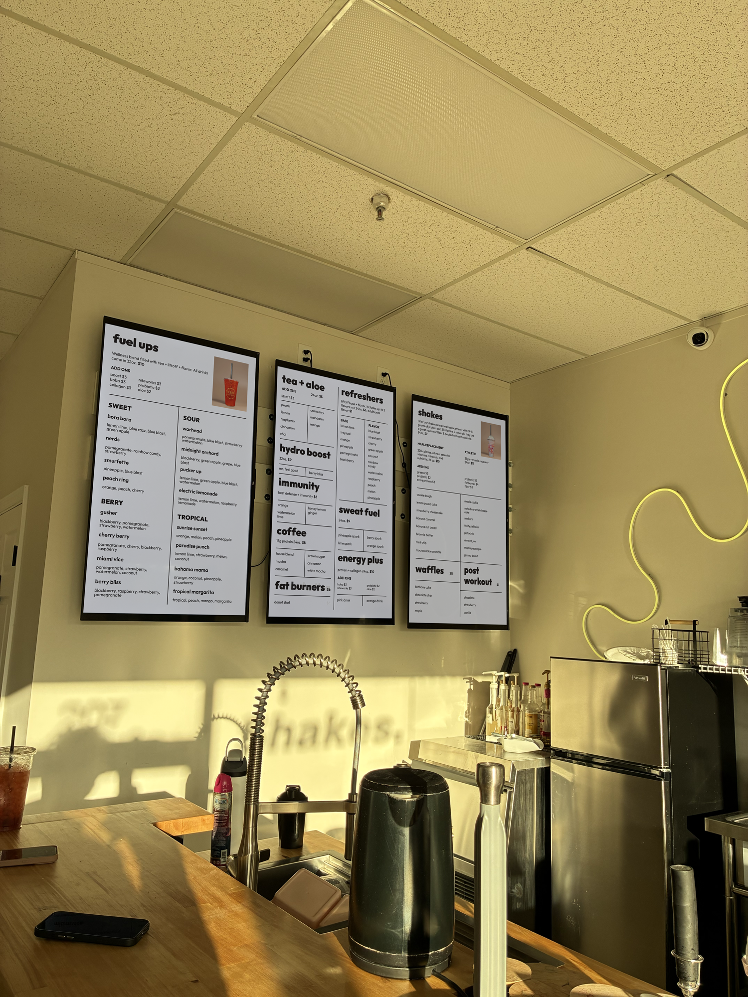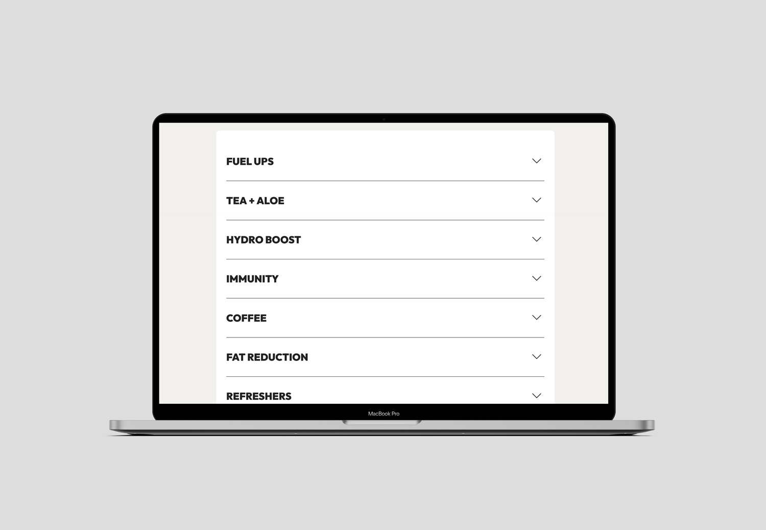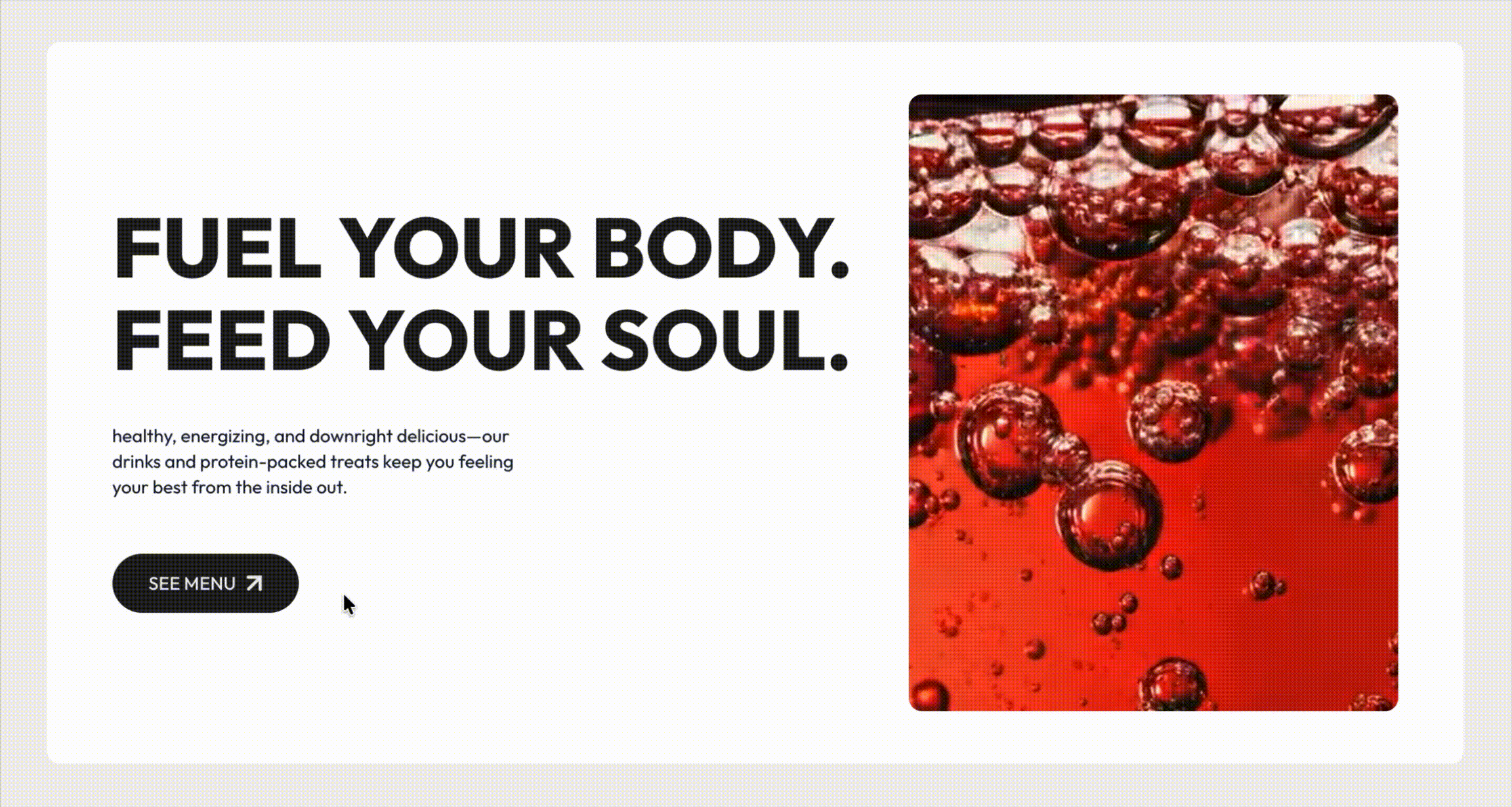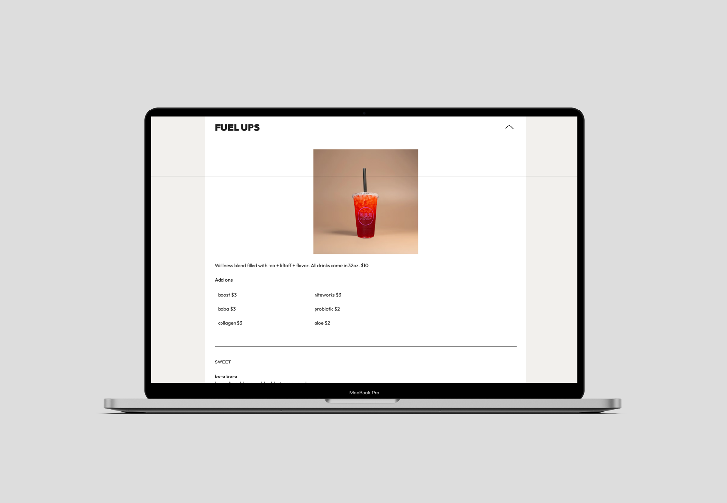 The redesigned menu simplifies product offerings into intuitive, scannable categories while introducing a fresh visual hierarchy that balances personality with function. Paired with subtle tones and neutral gradients, the design communicates a sense of calm energy, aligning with the brand's values of feeling good, doing good, and fueling your best self.