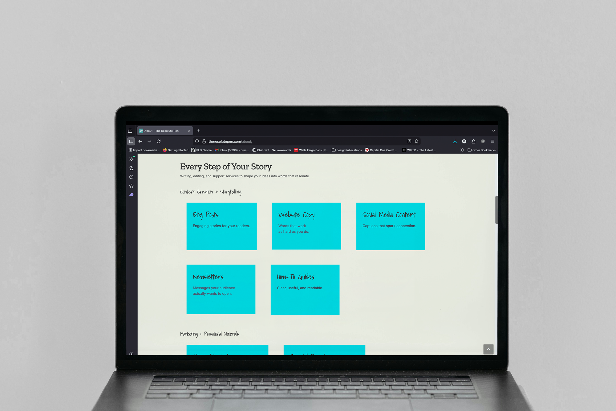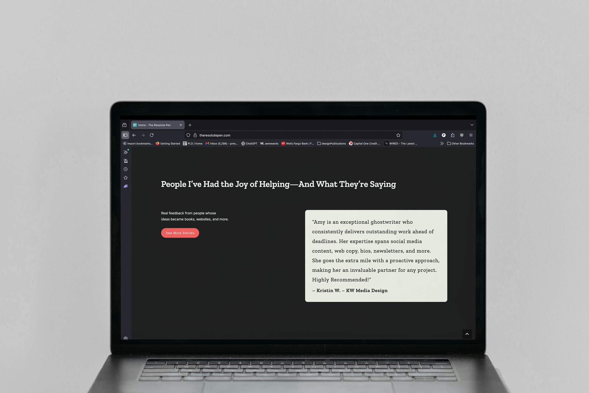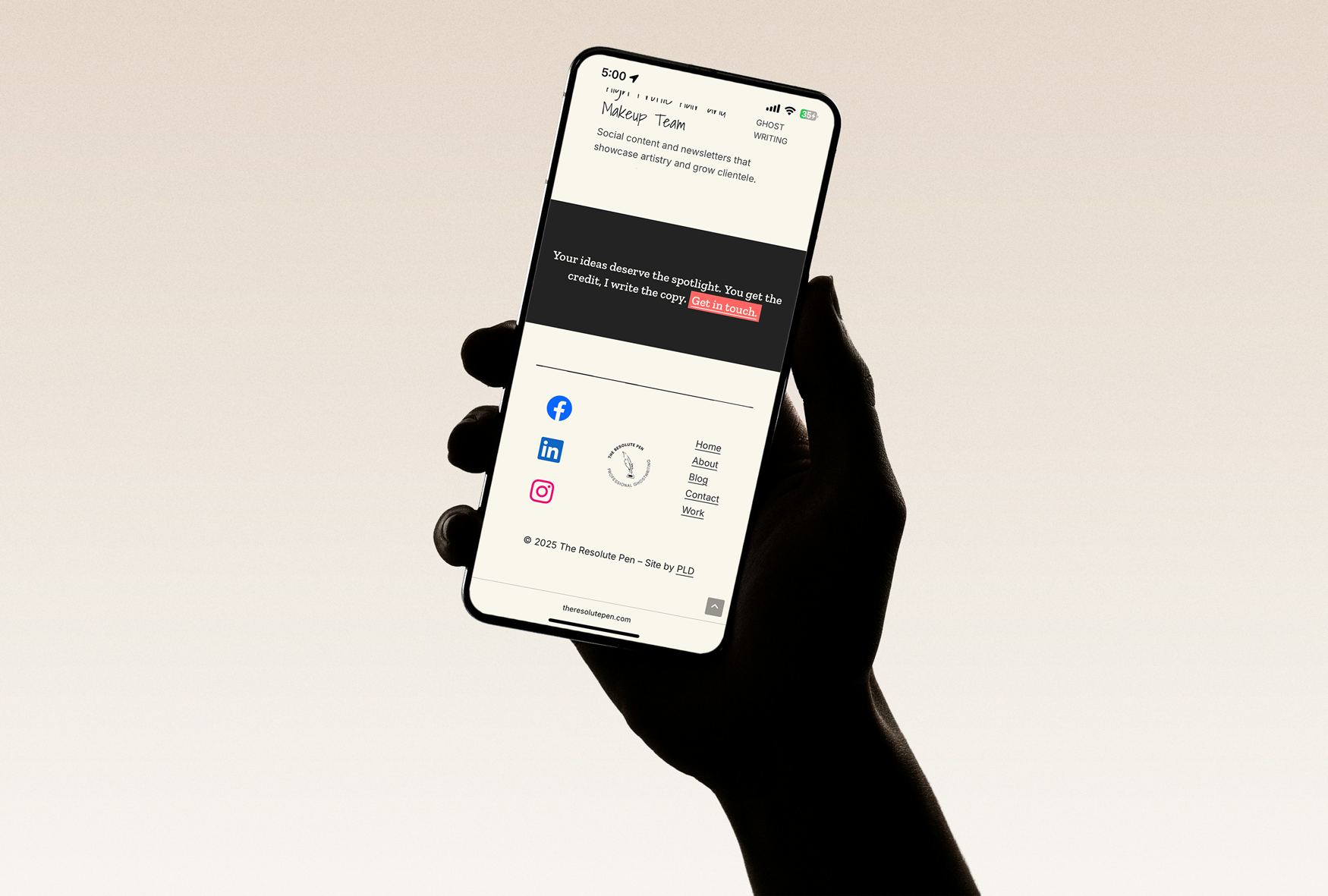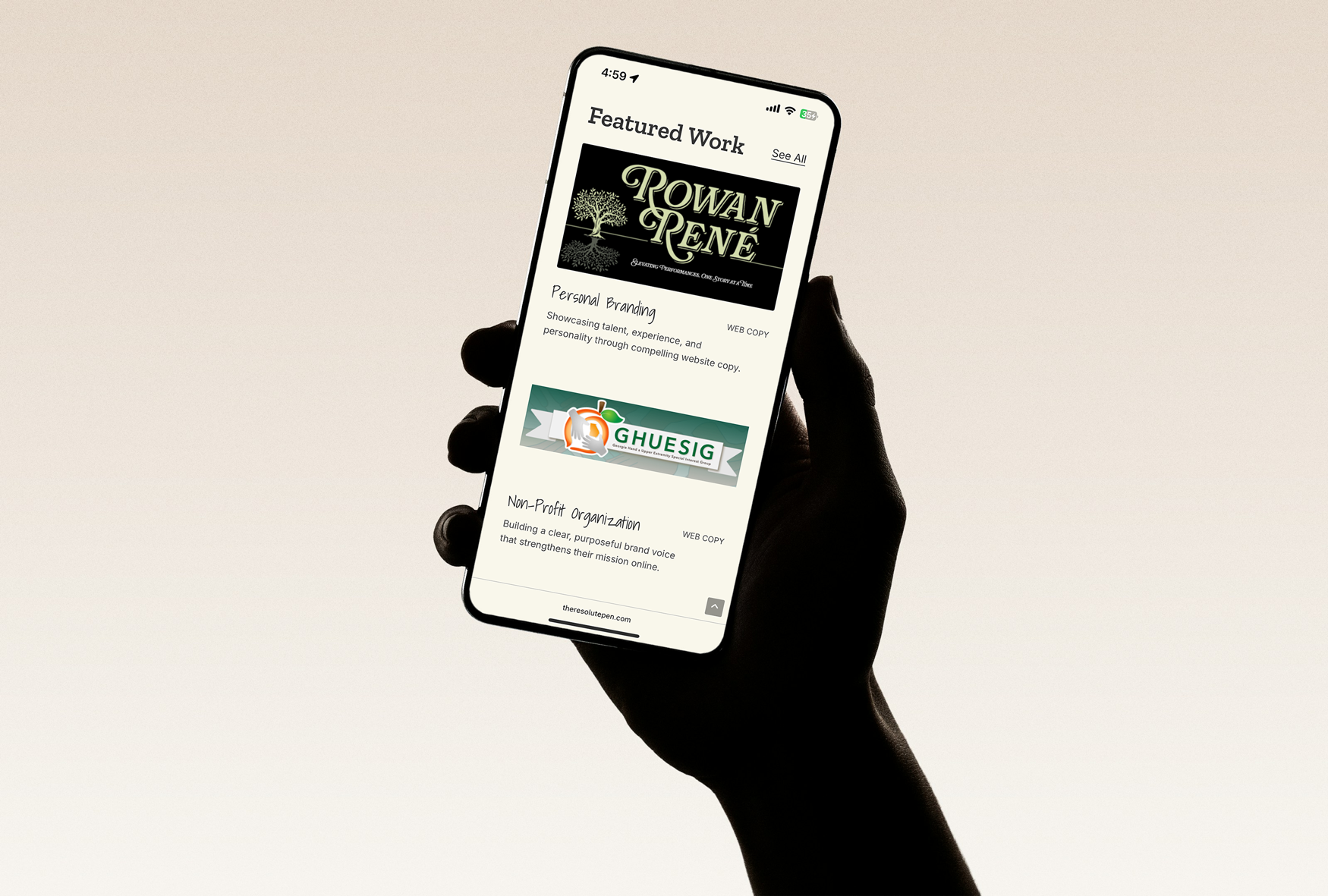 To pivot the business focus from general copywriting to specialized ghostwriting, The Resolute Pen partnered on a targeted web experience. The goal was to create a portfolio that felt personal and proven, establishing authority while navigating the unique privacy constraints of the industry.
